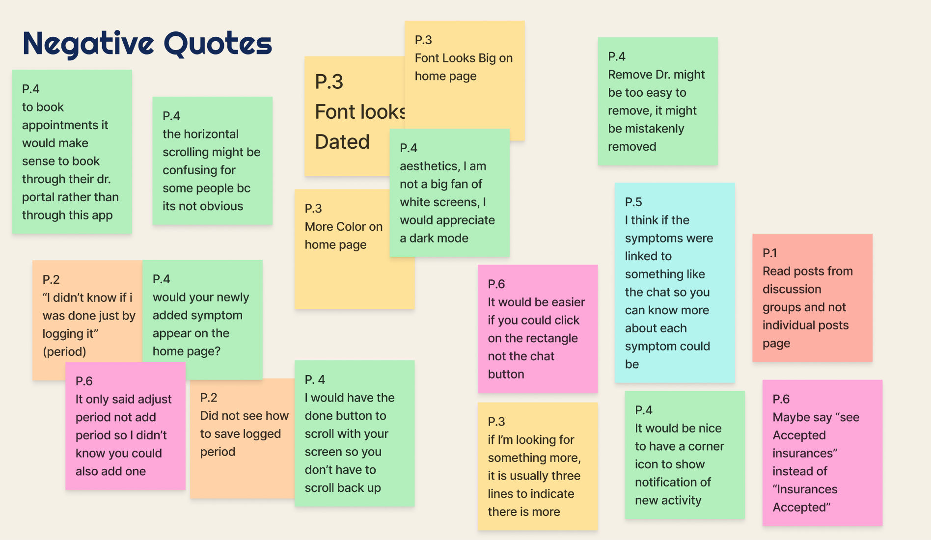 I conducted user interviews to gain insight as to what current menstrual app users think and feel about the apps they use, why they use them, or why they avoid them. Their feedback gave me invaluable feedback for current industry gaps and how I can fill them to users' satisfaction.